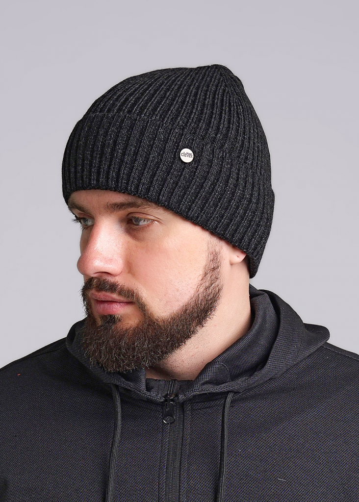 CLE Шапка 433885аш флис, чёрный/меланж т.серый