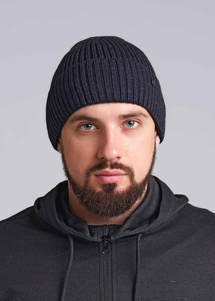 Шапка мужская с отворотом на флисе, декорирована металлической нашивкой с гравировкой