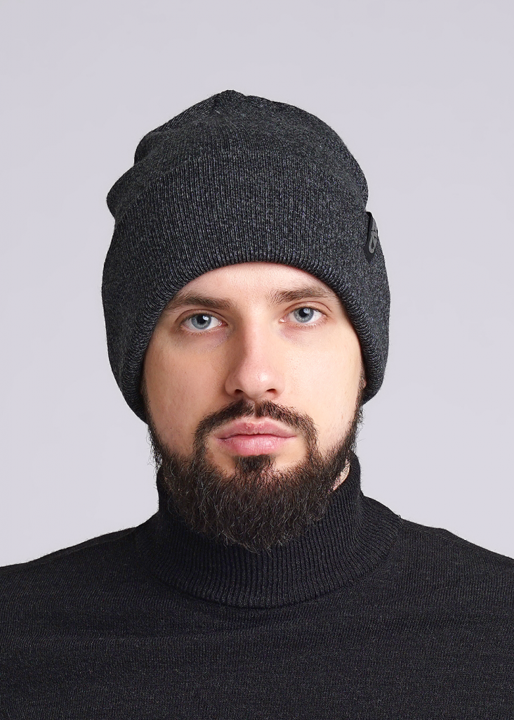 Шапка двойная с отворотом из мулинированной мпяжи, декорирована стильной нашивкой логотип. Отлично подойдёт для холодной осени- тёплой зимы.
