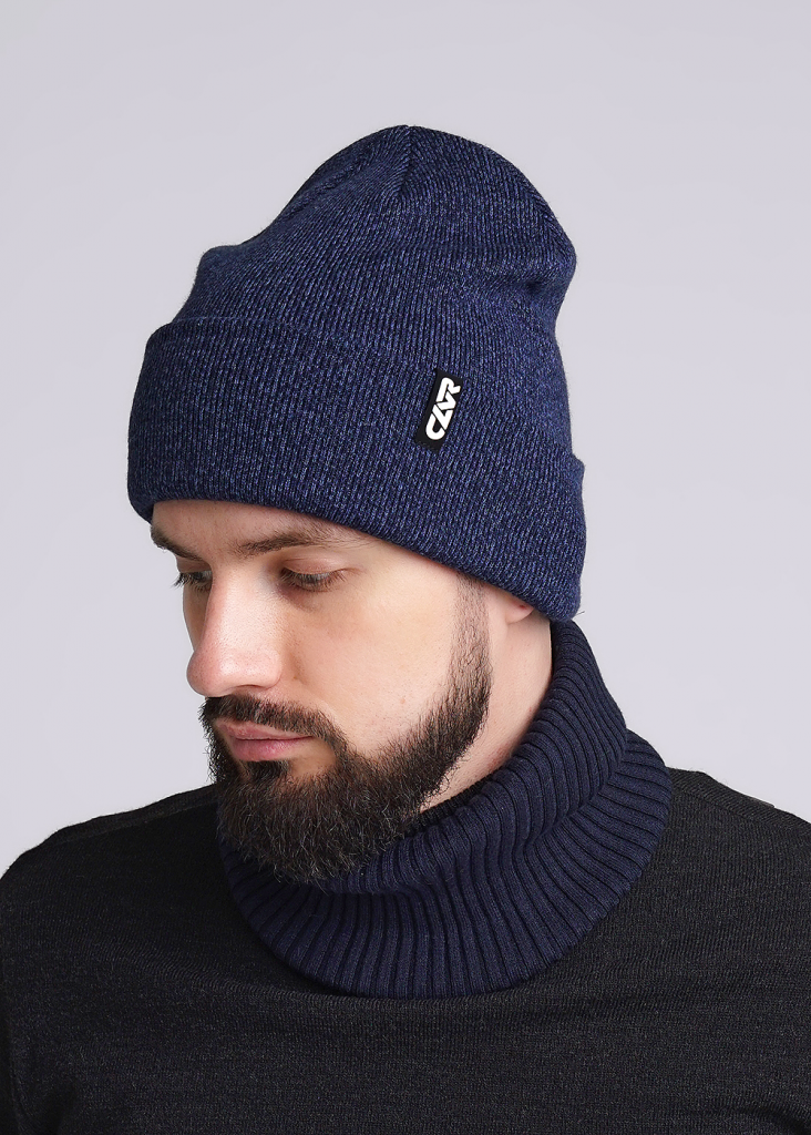 Шапка двойная с отворотом из мулинированной мпяжи, декорирована стильной нашивкой логотип. Отлично подойдёт для холодной осени- тёплой зимы.