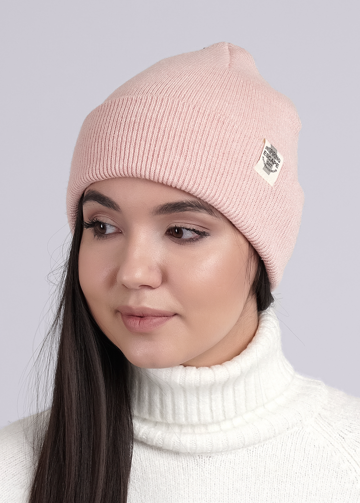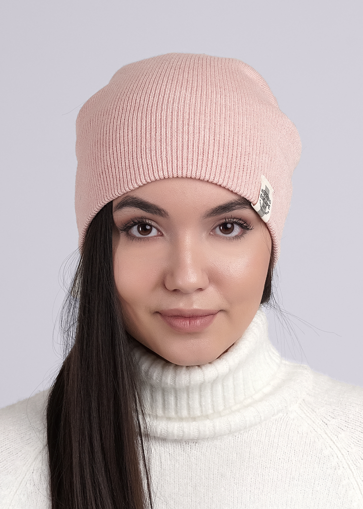 Шапка двойная женская, декорирована стильной нашивкой логотип. У данной модели 2 варианта посадки- с отворотом и без отворота. Идеально для холодной осени- тёплой зимы.