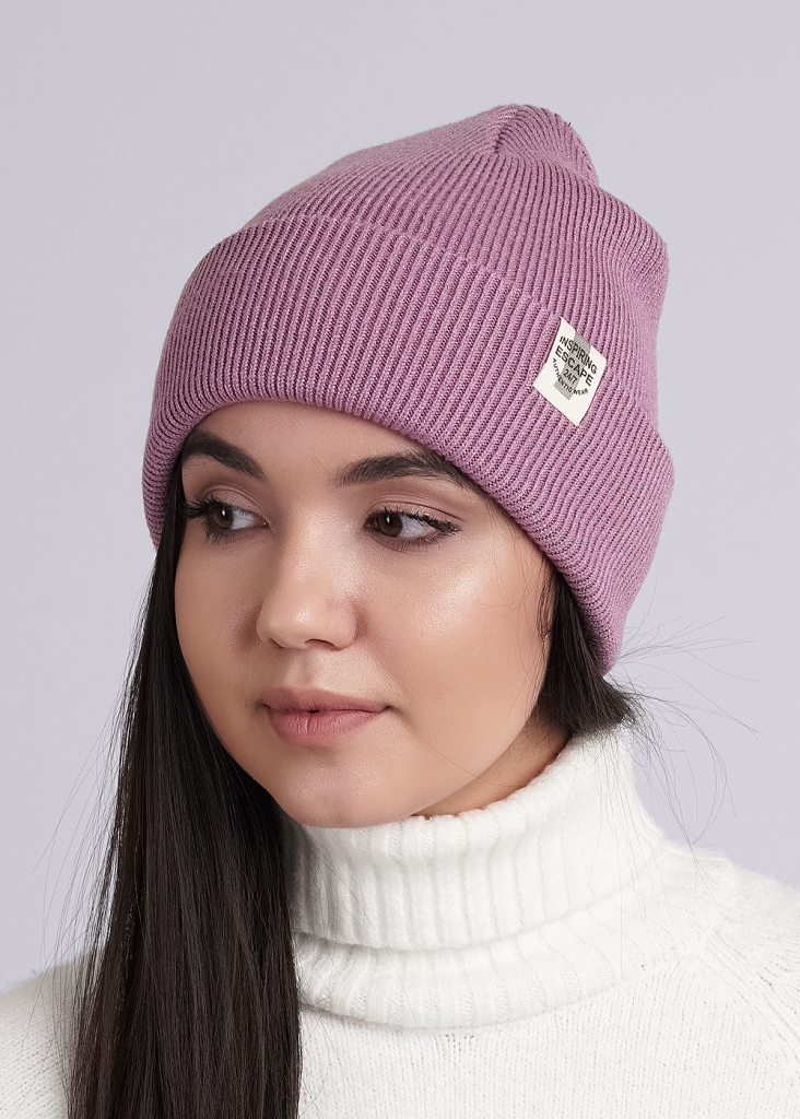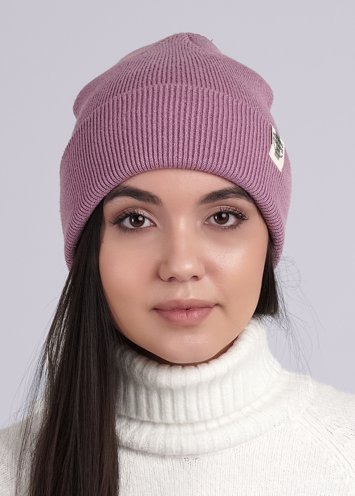 Шапка двойная женская, декорирована стильной нашивкой логотип. У данной модели 2 варианта посадки- с отворотом и без отворота. Идеально для холодной осени- тёплой зимы.