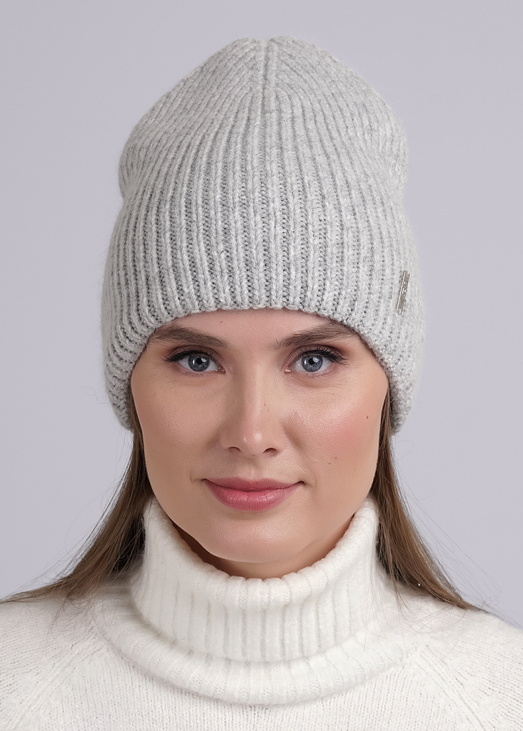 Шапка женская двойная, декорирована стильной нашивкой. Отлично подойдёт для холодной зимы.