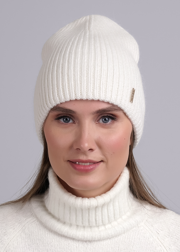 Шапка женская двойная, декорирована стильной нашивкой. Отлично подойдёт для холодной зимы.