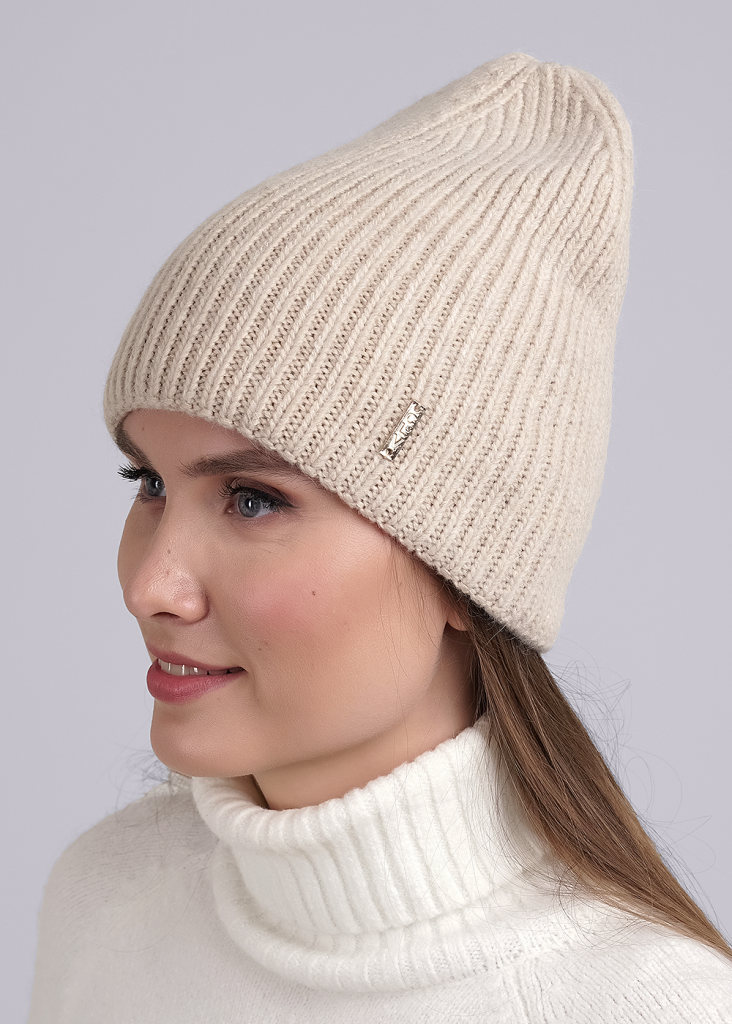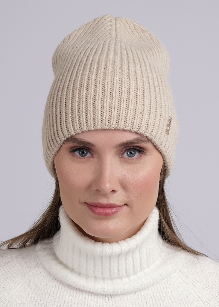 Шапка женская двойная, декорирована стильной нашивкой. Отлично подойдёт для холодной зимы.
