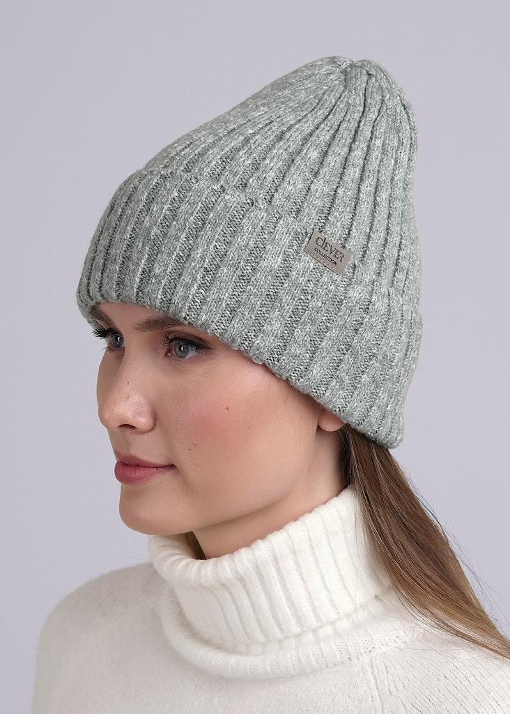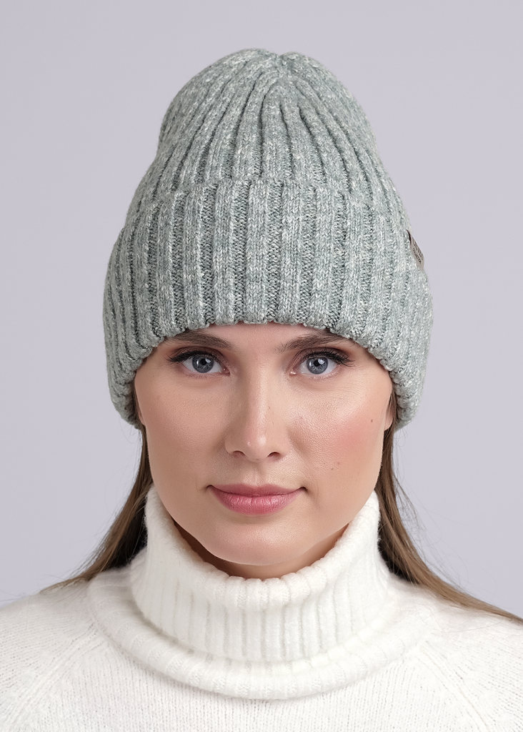 Шапка женская с отворотом, выполнена ластичным переплетением. Декорирована нашивкой логотип в височной зоне. Отлично подойдёт для холодной осени- тёплой зимы.