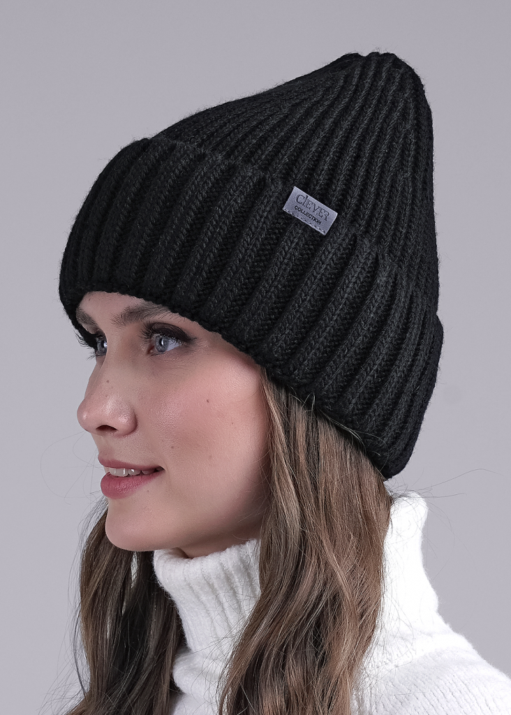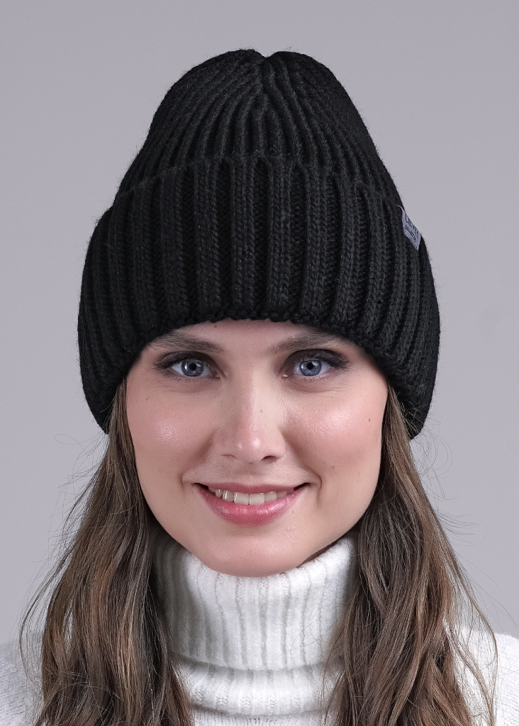 Шапка женская с отворотом, без подклада, декорирована нашивкой логотип. Подойдёт для холодной осени-тёплой зимы.