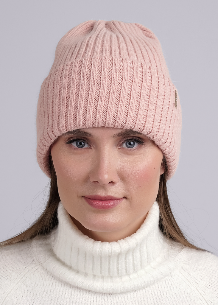 Шапка женская с отворотом, выполнена ластичным переплетением, декорирована нашивкой логотип. Утепление по всей голове флисом. Идеально подойдёт для холодной зимы.