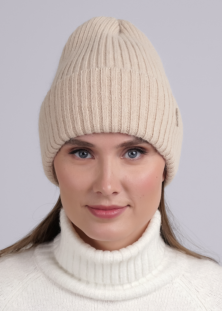 Шапка женская с отворотом, выполнена ластичным переплетением, декорирована нашивкой логотип. Утепление по всей голове флисом. Идеально подойдёт для холодной зимы.