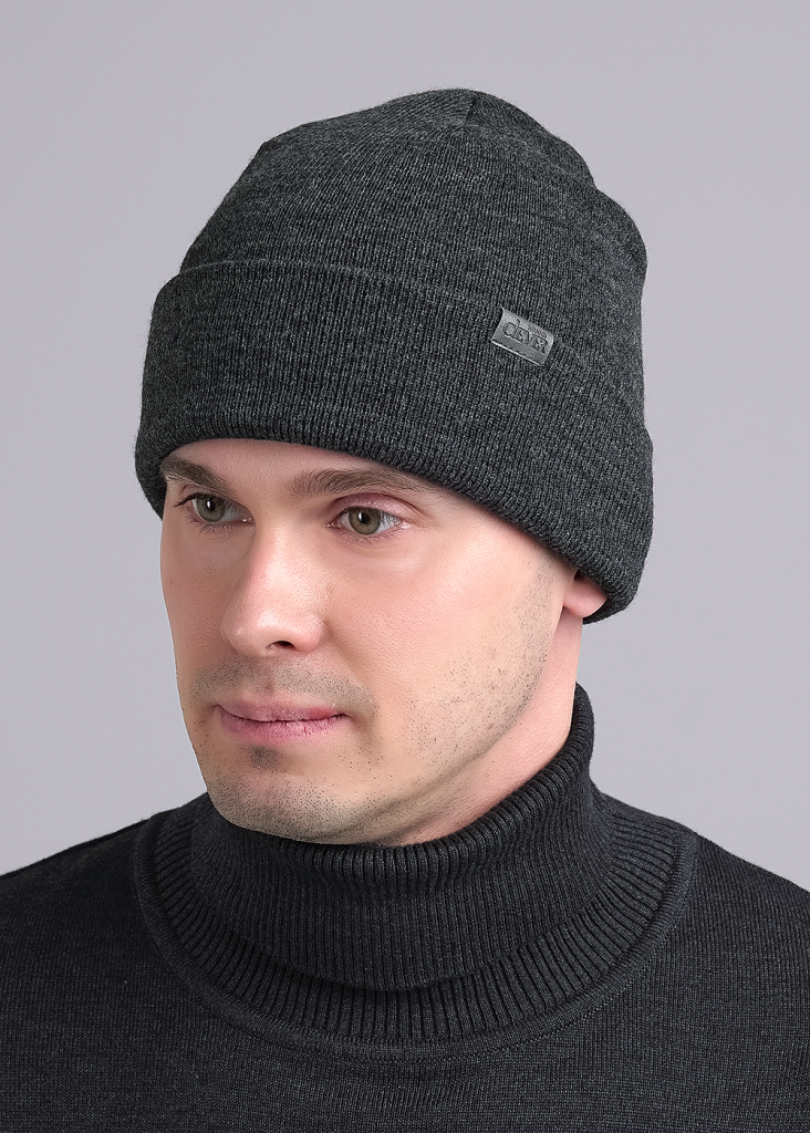 Шапка мужская двойная с отворотом, декорирована стильной нашивкой логотип. Идеально подойдёт для холодной осени- тёплой зимы.