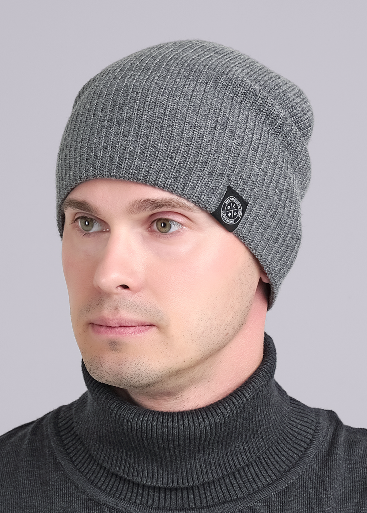 Мужская двойная шапка, декорирована стильной нашивкой. Утепление флисом в области ушей. Отлично подойдёт для холодной зимы.
