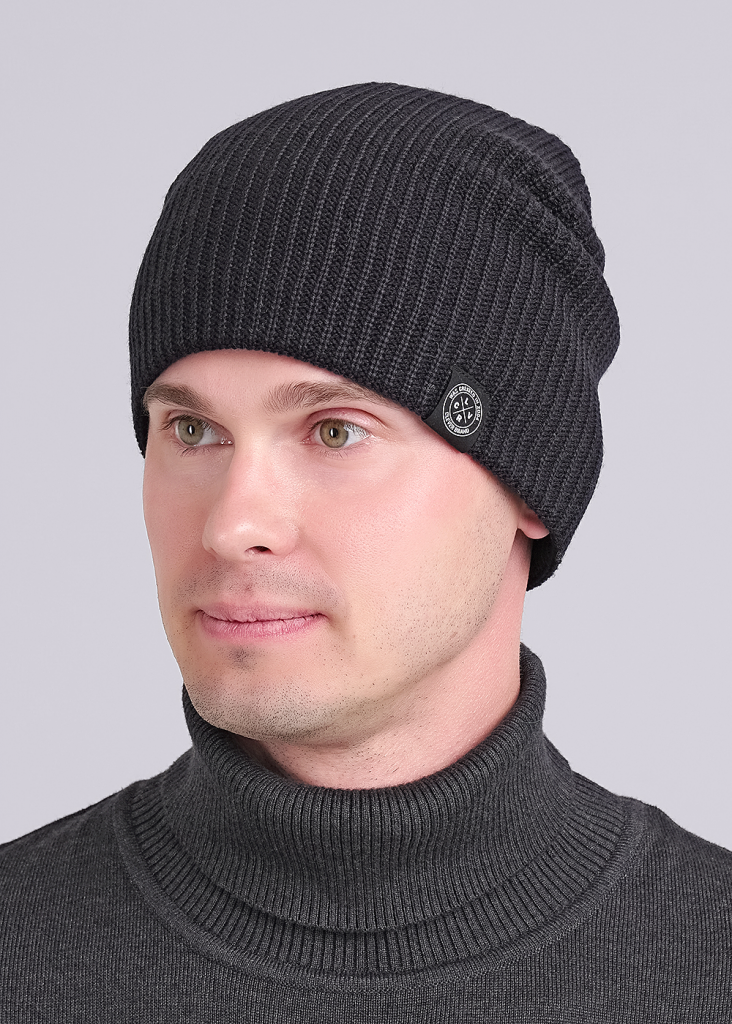 Мужская двойная шапка, декорирована стильной нашивкой. Утепление флисом в области ушей. Отлично подойдёт для холодной зимы.