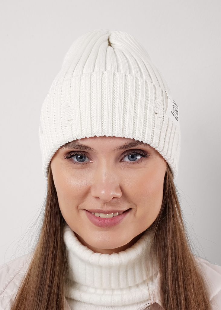 Хит сезона- "рваная" шапка в стиле кежуал. Шапка женская с отворотом и макушкой- "тыковка", декорирована стильной нашивкой в височной зоне. Отлично подойдет для холодной осени- тёплой зимы.