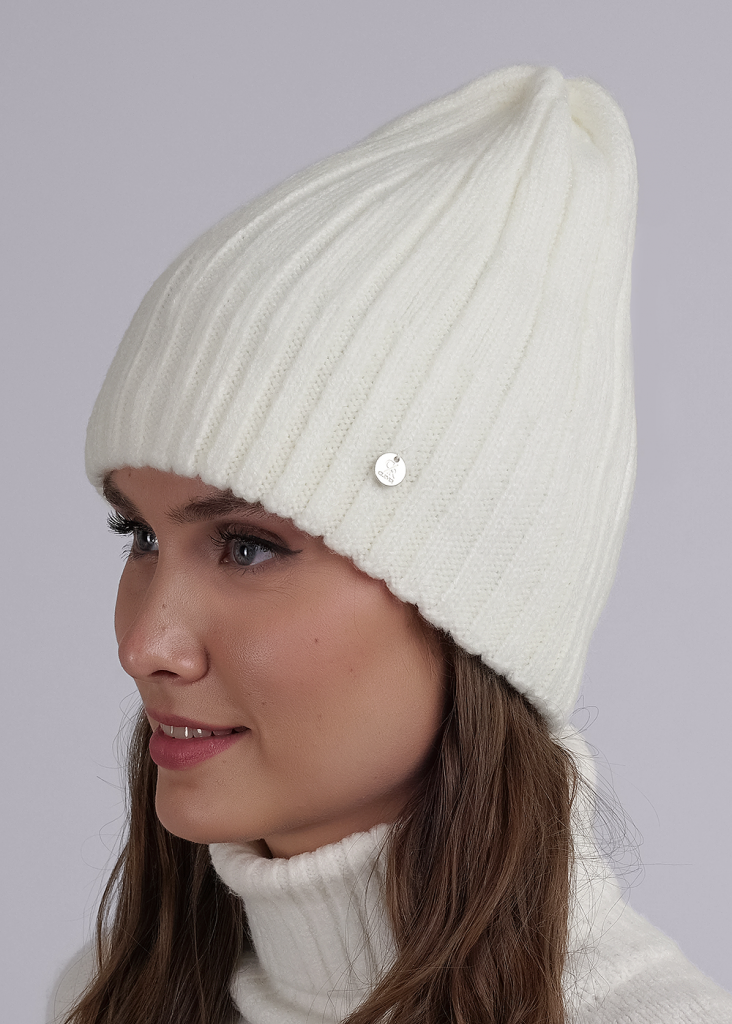 Женская двойная шапка, декорирована нашивкой логотип. Отлично подойдёт для зимы.