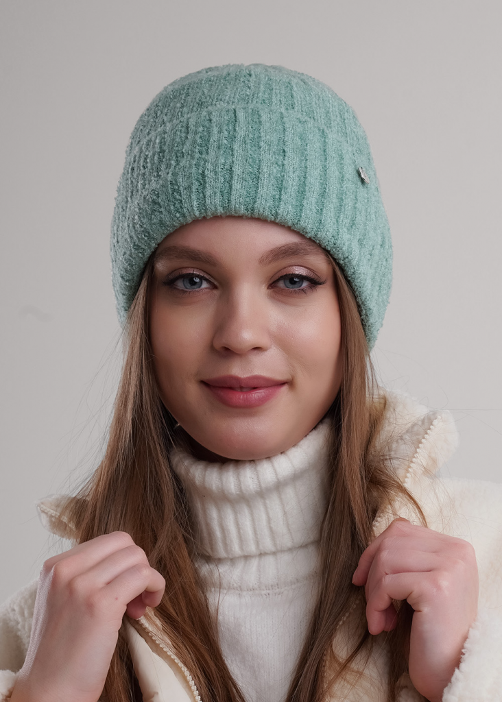 Шапка женская с отворотом, декорирована нашивкой логотип в височной зоне. Утепление флисом по всей голове. Отлично подойдёт для холодной зимы.
