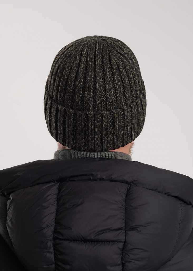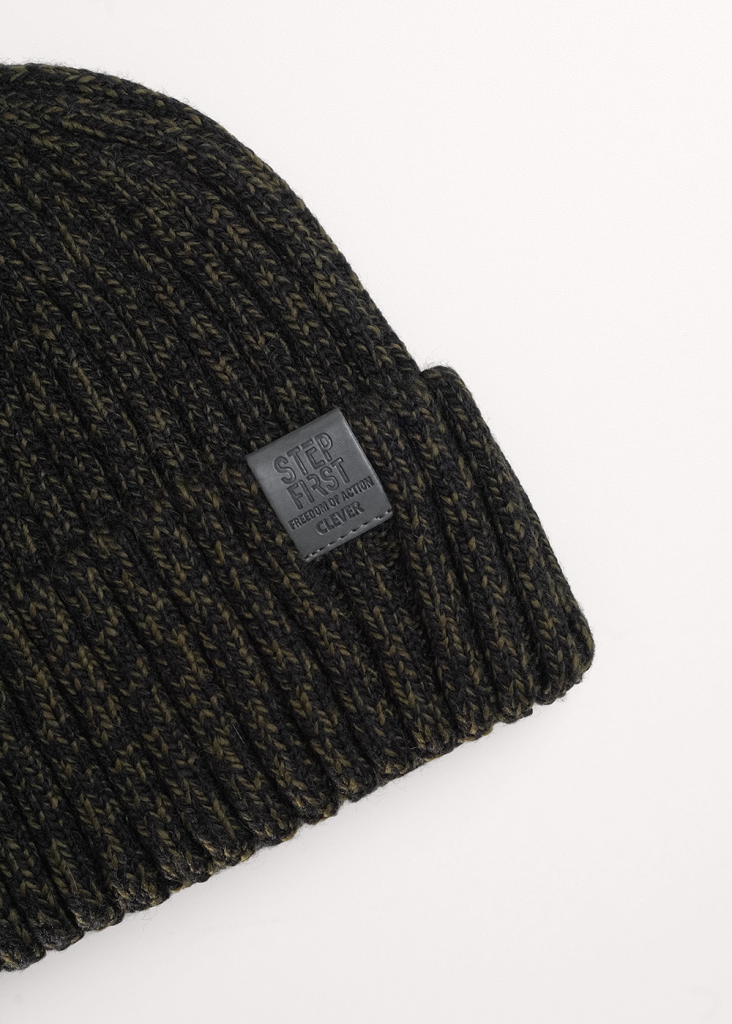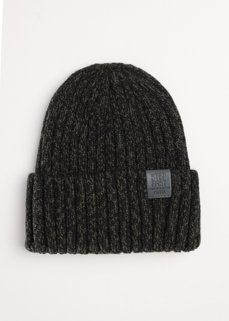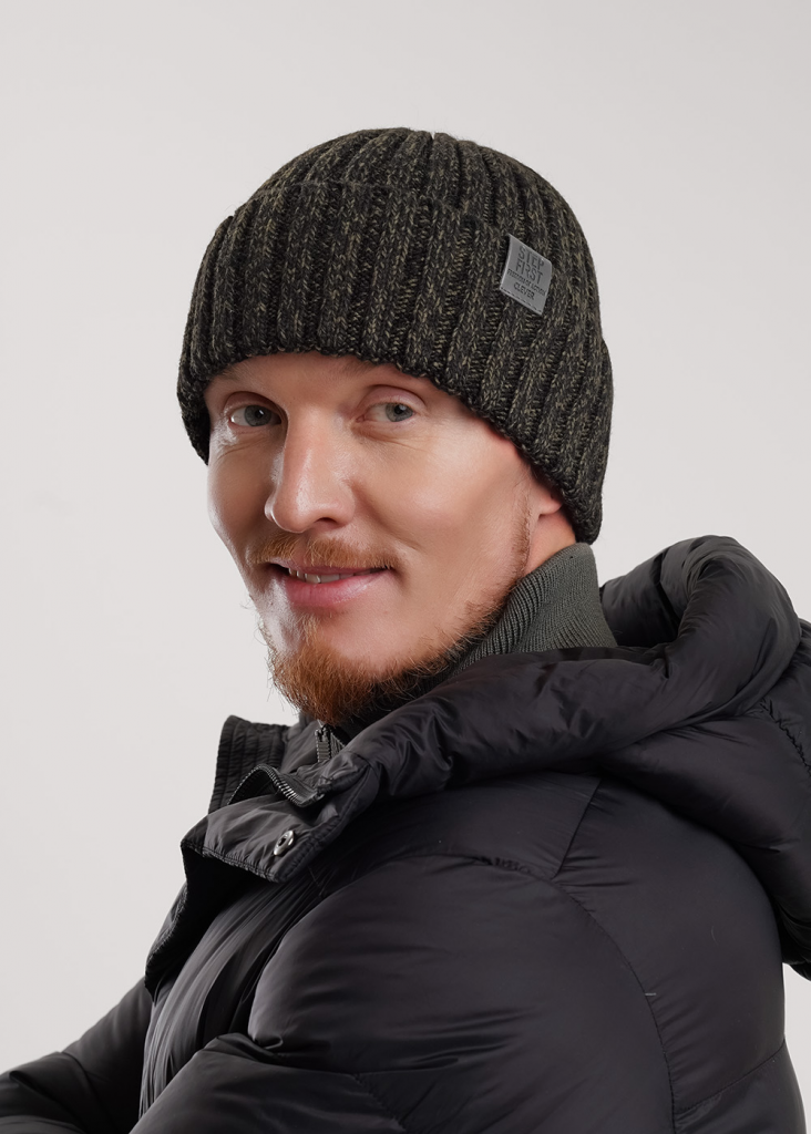 Мужская шапка из скрученой пряжи с отворотом, декорирована стильной нашивкой- логотип. Идеально подойдёт для холодной осени, тёплой зимы.