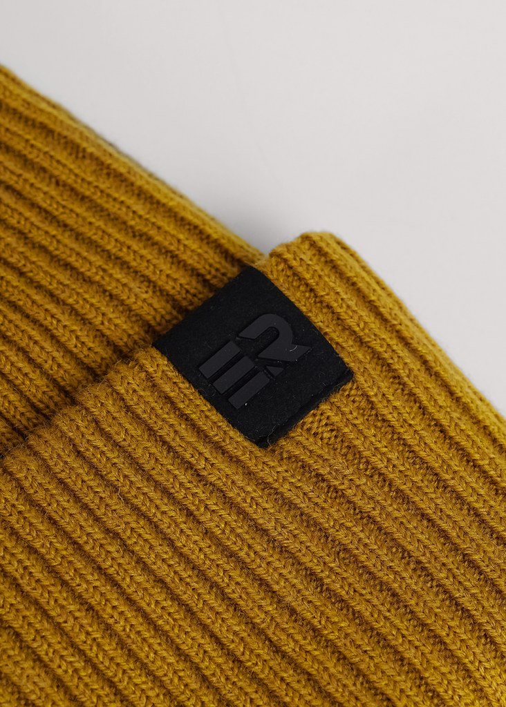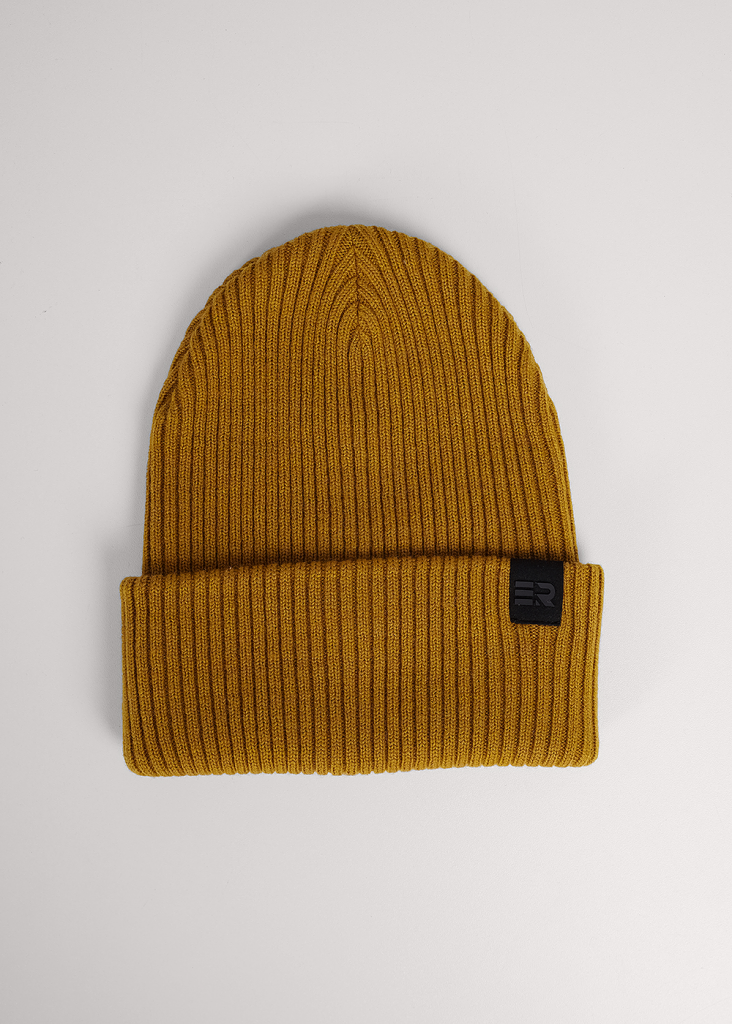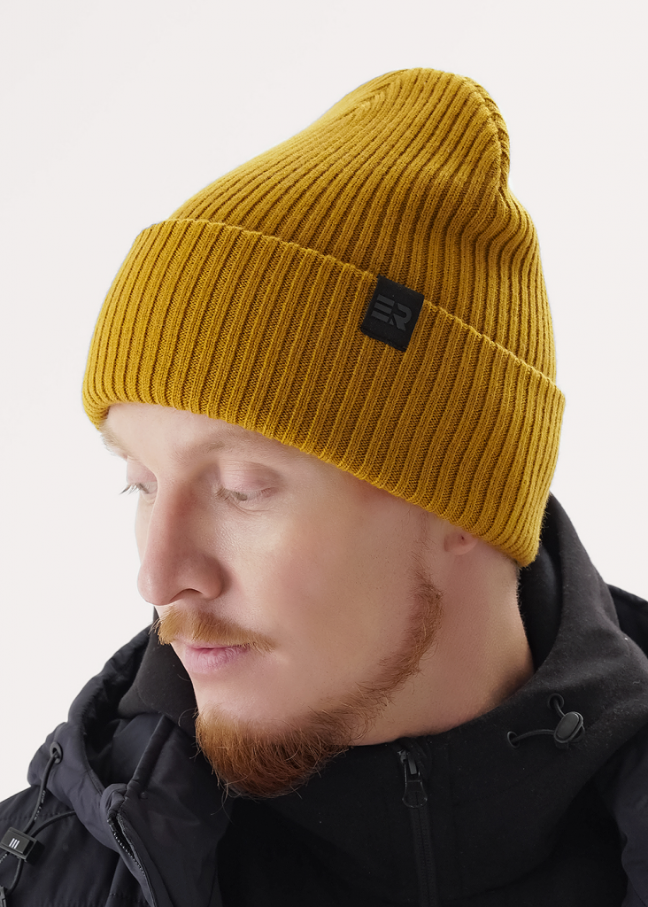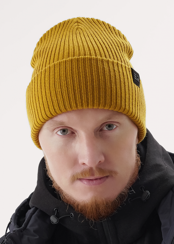 Мужская шапка с отворотом выполнена из высококачественной пряжи с добавлением шерсти, декорирована логотипом- нашивкой.