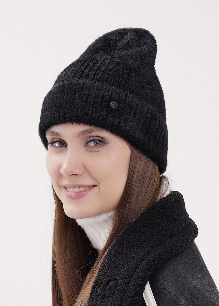 Шапка женская с отворотом, выполнена ластичным переплетением. Декорирована нашивкой логотип. Отдично подойдёт для осенне- зимнего периода.