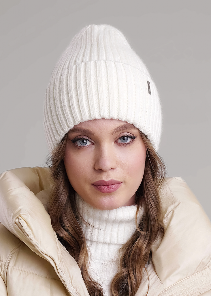 Женская шапка с отворотом выполнена из высококачественной пряжи с добавлением ангоры, декорирована стильной нашивкой. Утепление флисом по всей голове. Станет не только отличной защитой от холода, но и модным аксессуаром.