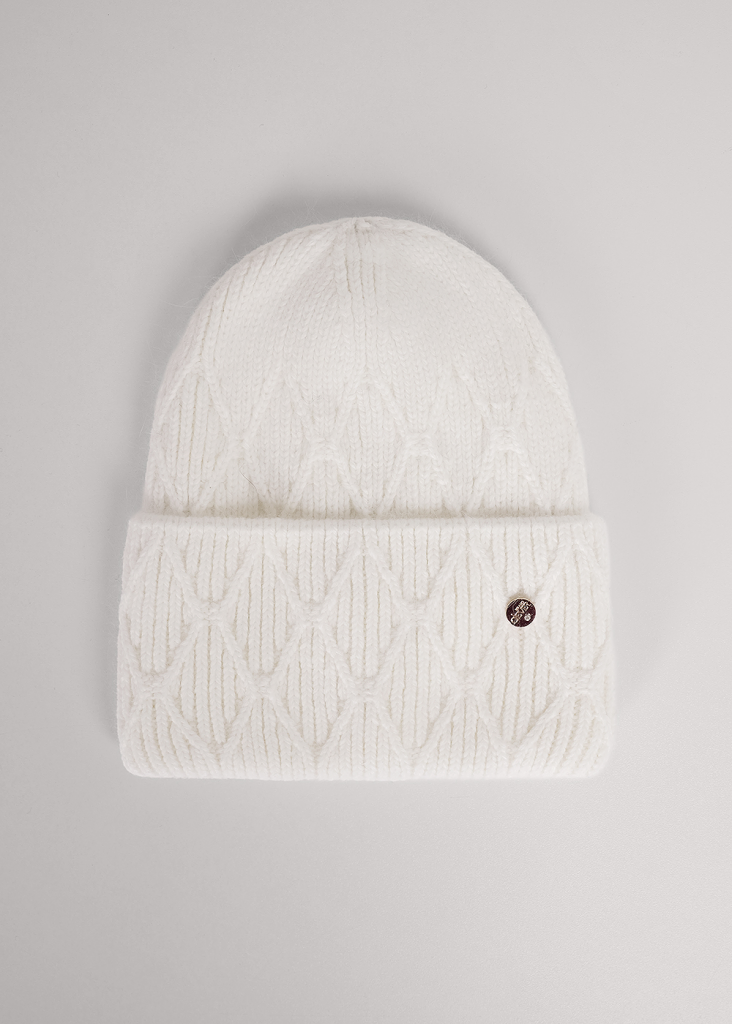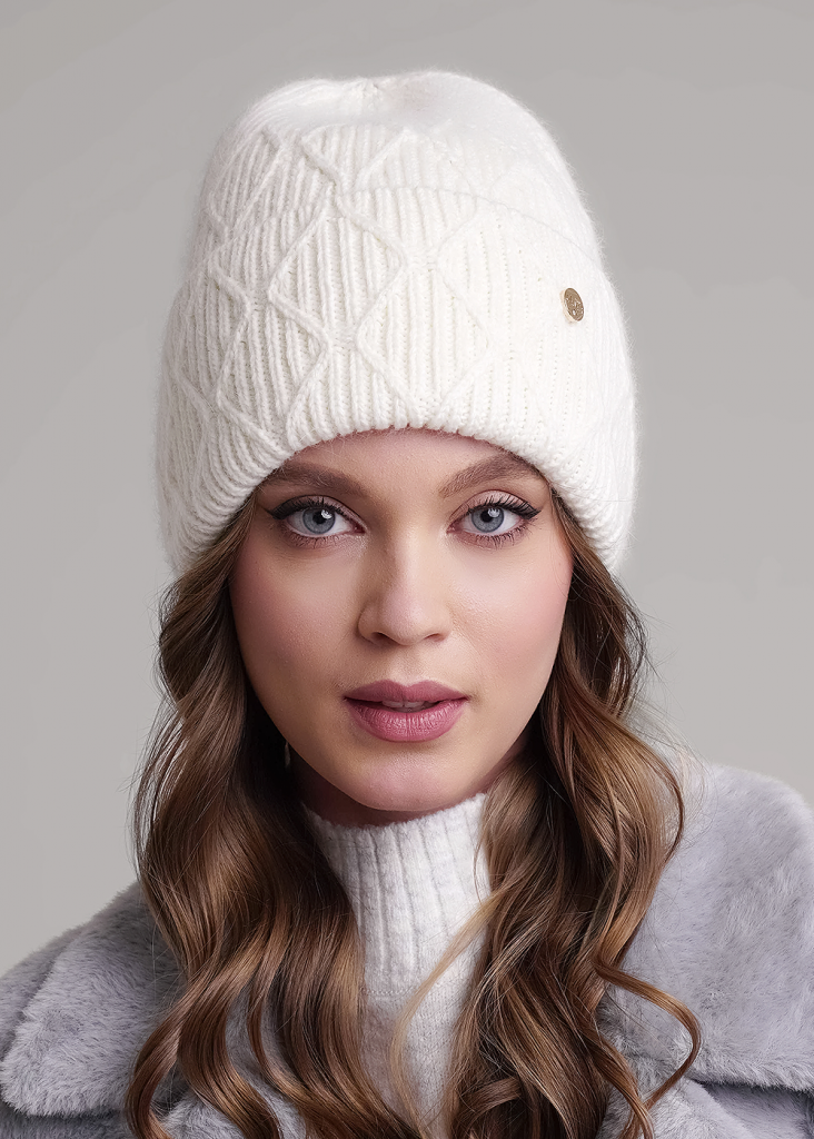 Женская шапка с отворотом выполнена из высококачественной пряжи с добавлением ангоры, декорирована стильной нашивкой. Утепление флисом по всей голове. Станет не только отличной защитой от холода, но и модным аксессуаром.
