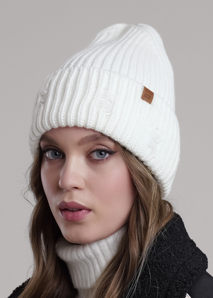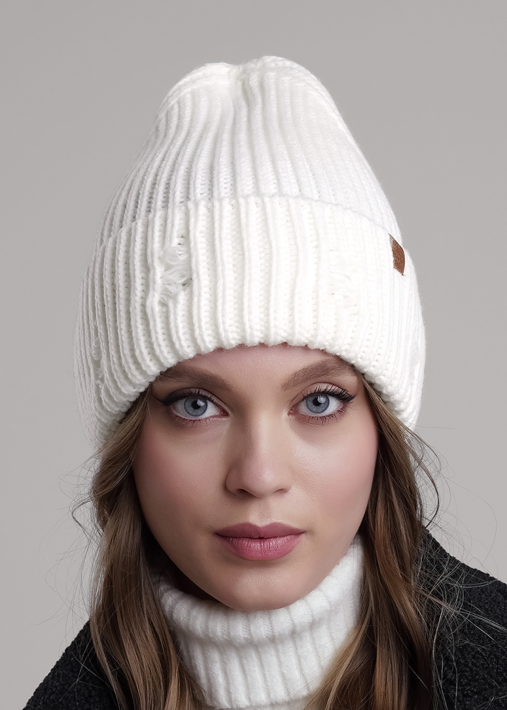 Шапка женская с отворотом, без подклада. На отвороте декорирована спущенными петлями - эффект "рваной" шапки. Модный аксессуар идеально подойдёт для холодной осени, тёплой зимы.