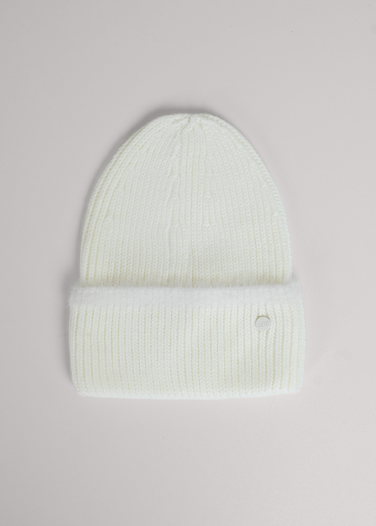 Шапка женская однослойная с отворотом, без подклада. Выполнена из высококачественной пряжи, декорирована стильной нашивкой в височной зоне. Станет не только отличной защитой от холода, но и модным аксессуаром.