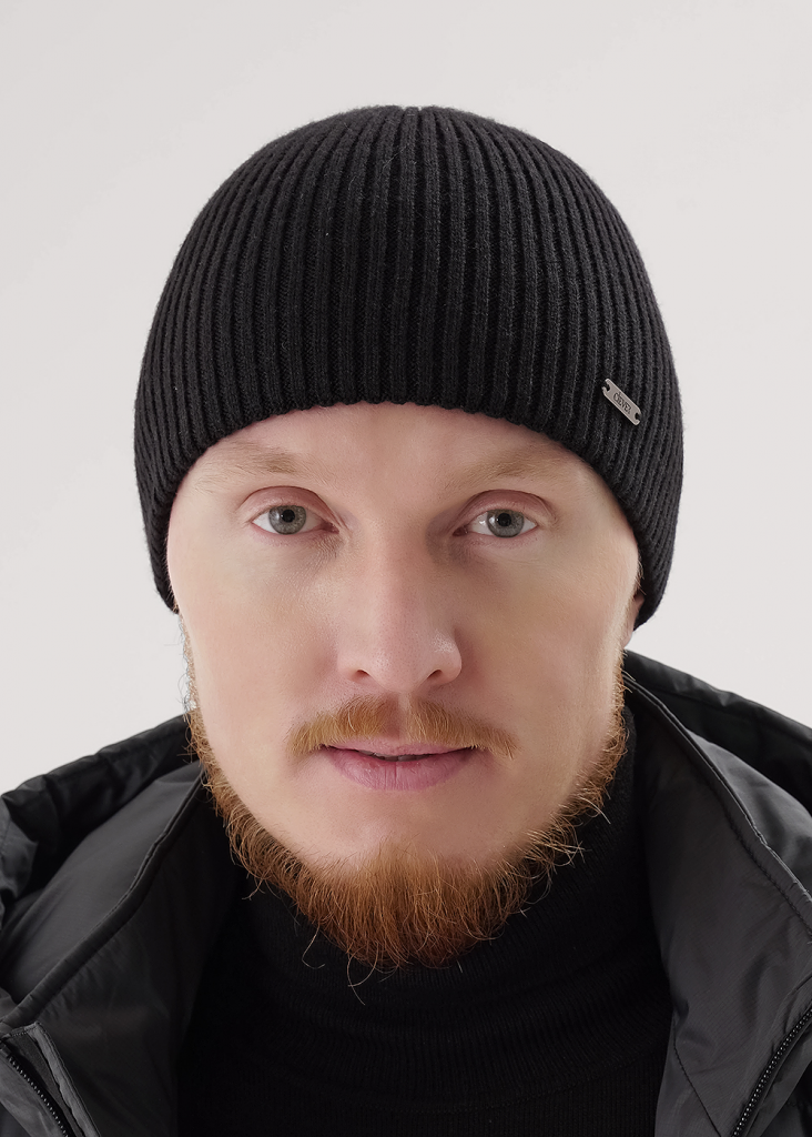 Шапка мужская двухслойная без отворота, без подклада. Выполнена из высококачественной пряжи с добавлением шерсти, декорирована стильной нашивкой в височной зоне. Идеально подойдёт для холодной зимы.