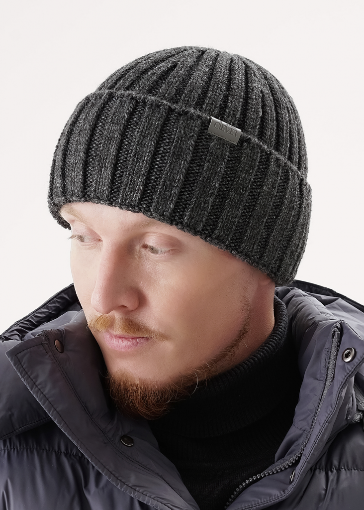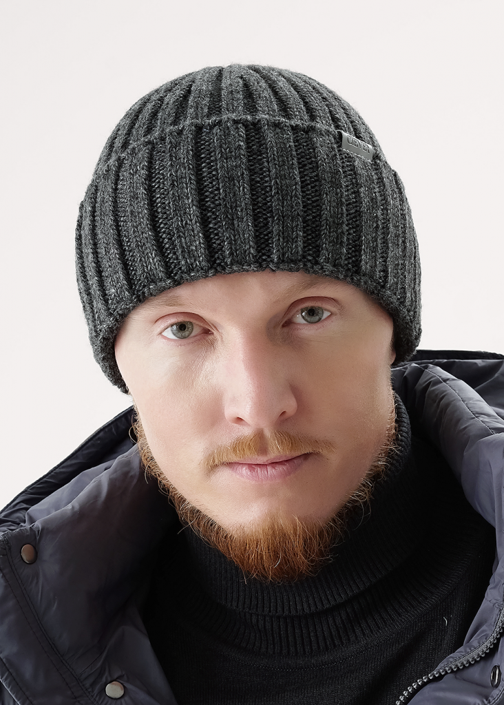 Шапка мужская однослойная с отворотом, без подклада. Выполнена из высококачественной пряжи, декорирована стильной нашивкой в височной зоне. Станет не только отличной защитой от холода, но и модным аксессуаром.