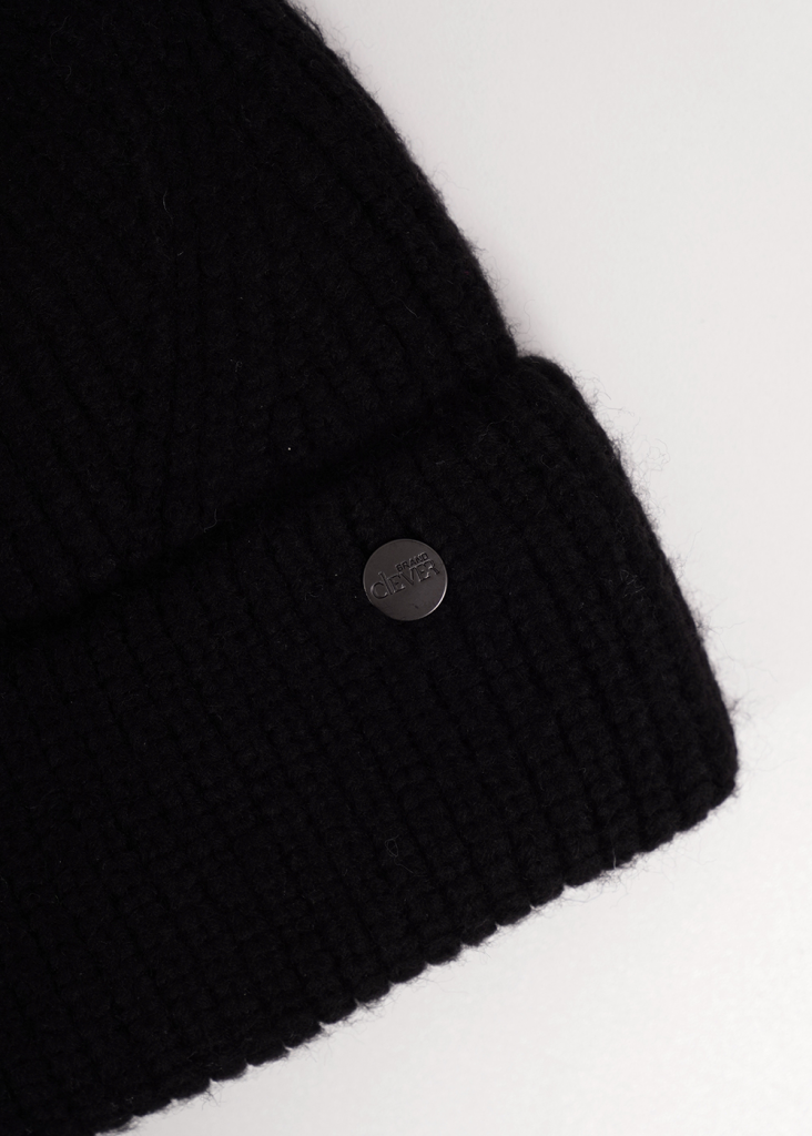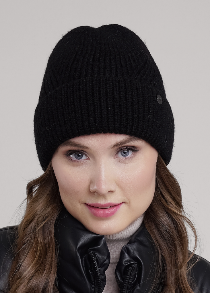 Женская шапка с отворотом, подклад из флиса по всей голове. Декорирована стильной нашивкой. Станет не только отличной защитой от холода, но и модным аксессуаром.