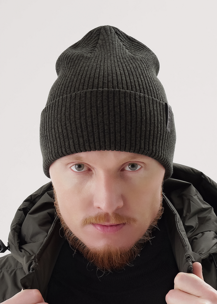 Шапка мужская с отворотом, без подклада. Выполнена из высококачественной пряжи, декорирована стильной нашивкой. Станет не только отличной защитой от холода, но и модным аксессуаром.