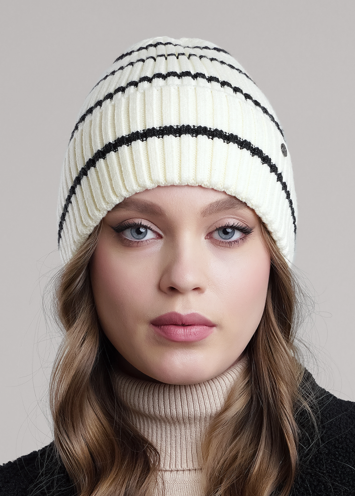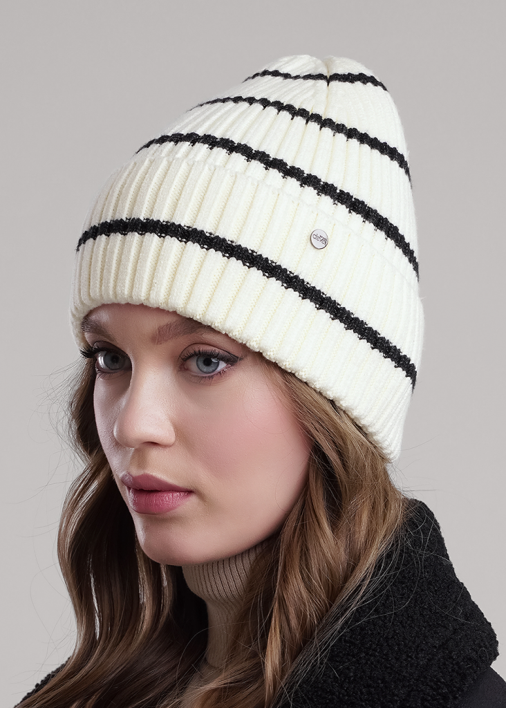 CLE Шапка 454518вп, молочный/меланж чёрный