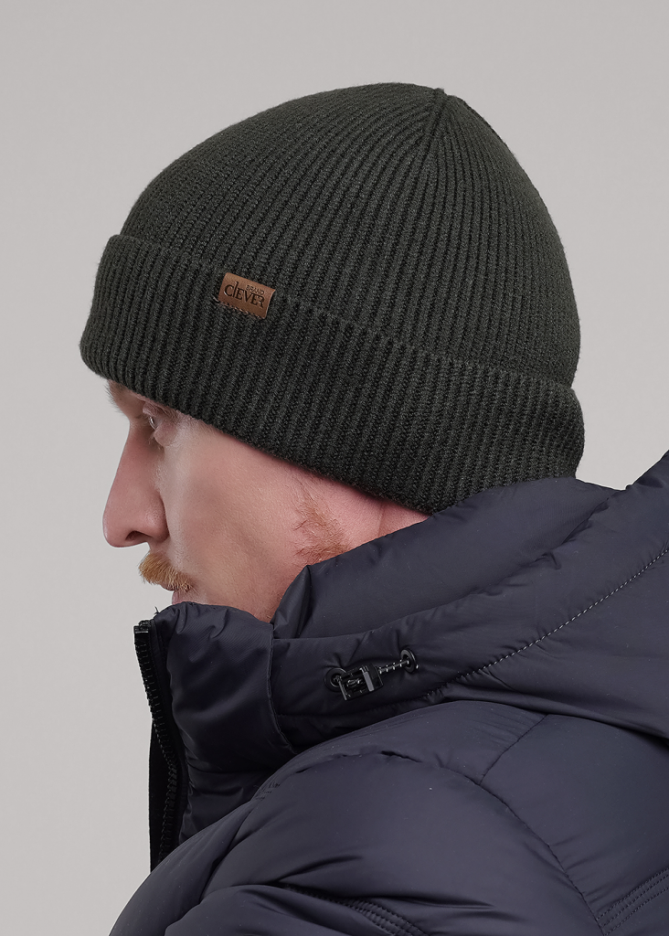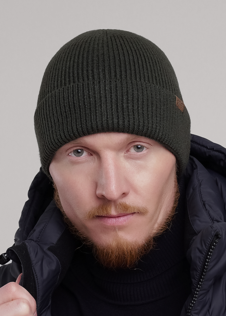 Шапка мужская однослойная с отворотом, без подклада. Декорирована стильной нашивкой. Станет не только отличной защитой от холода, но и модным аксессуаром.