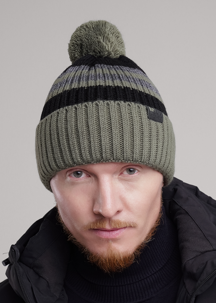 Шапка мужская с отворотом, с помпоном, с подкладом из флиса. Выполнена из высококачественной пряжи, декорирована стильной нашивкой. Станет не только отличной защитой от холода, но и модным аксессуаром.