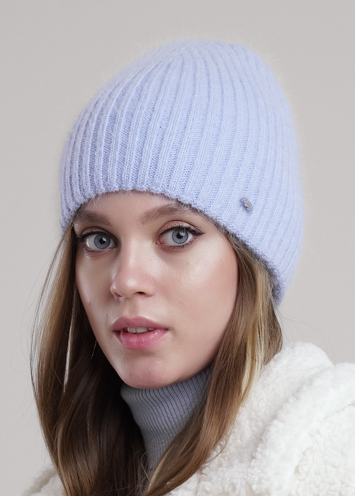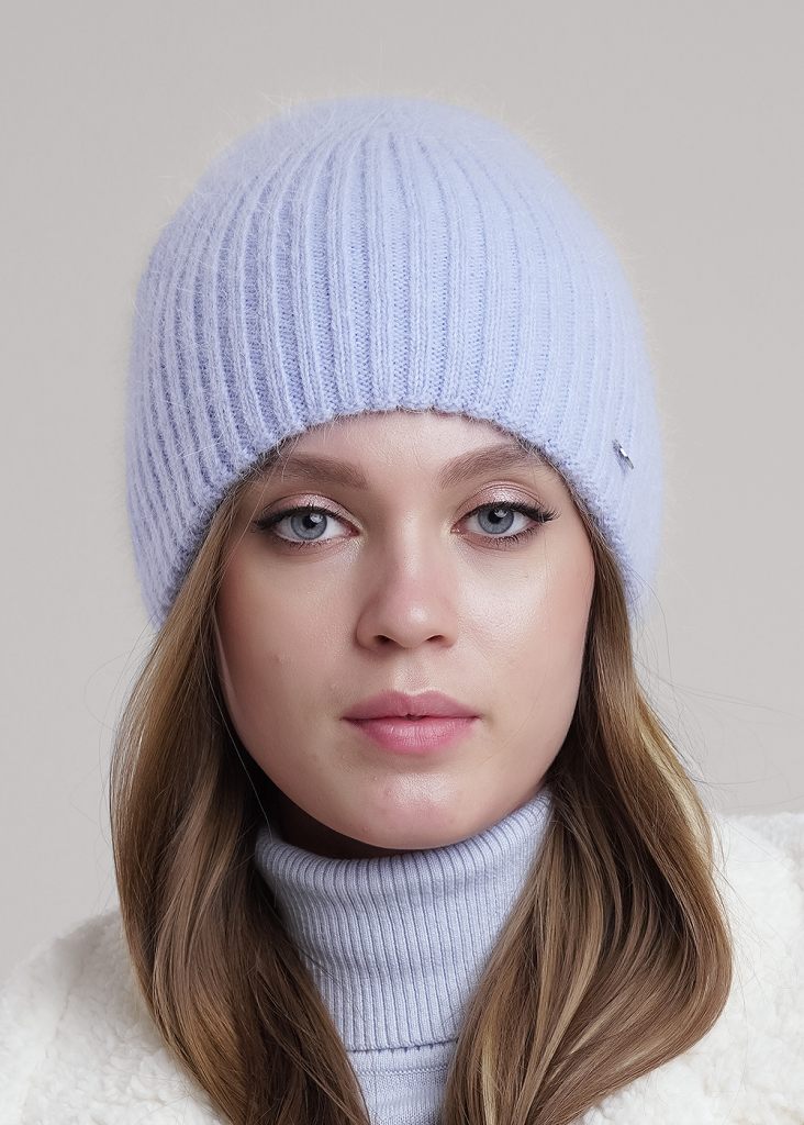 Женская двойная шапка без отворота, связаная ластичным переплетением, выполнена из пряжи с содержанием высококачественной ангоры.