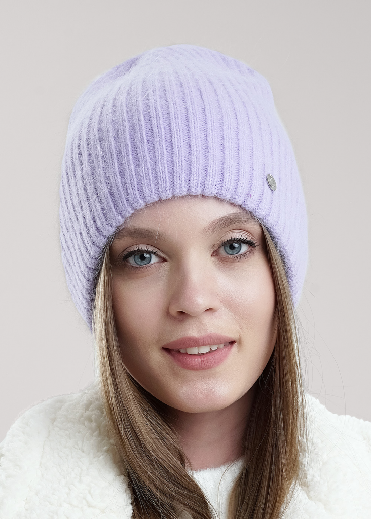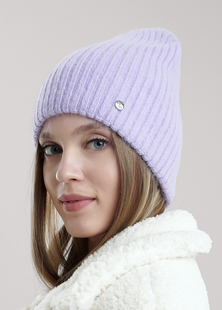 Женская двойная шапка без отворота, связаная ластичным переплетением, выполнена из пряжи с содержанием высококачественной ангоры.