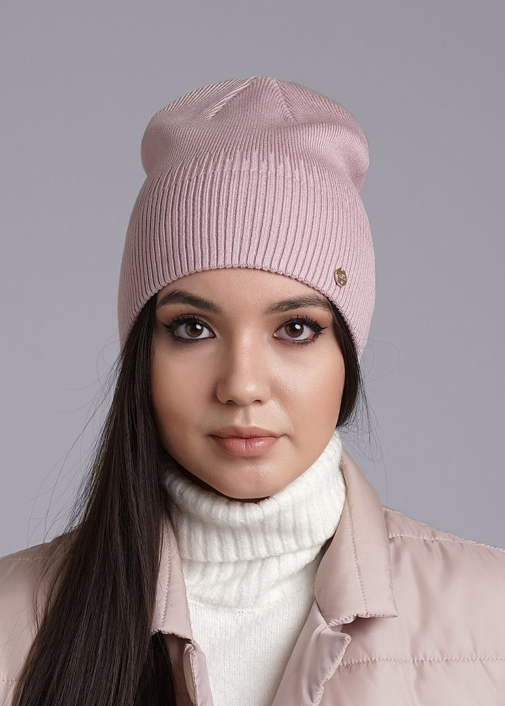 Женская двойная шапка, декорирована имиджевой нашивкой логотип. Идеально подойдёт для осенне-весенего периода.