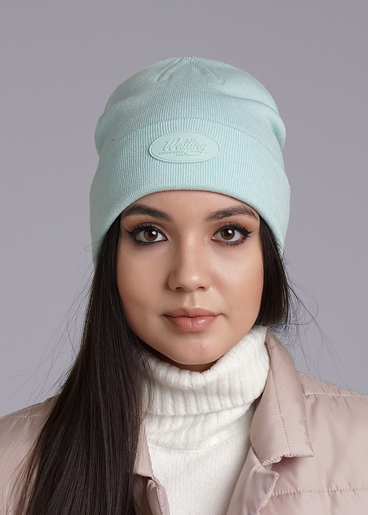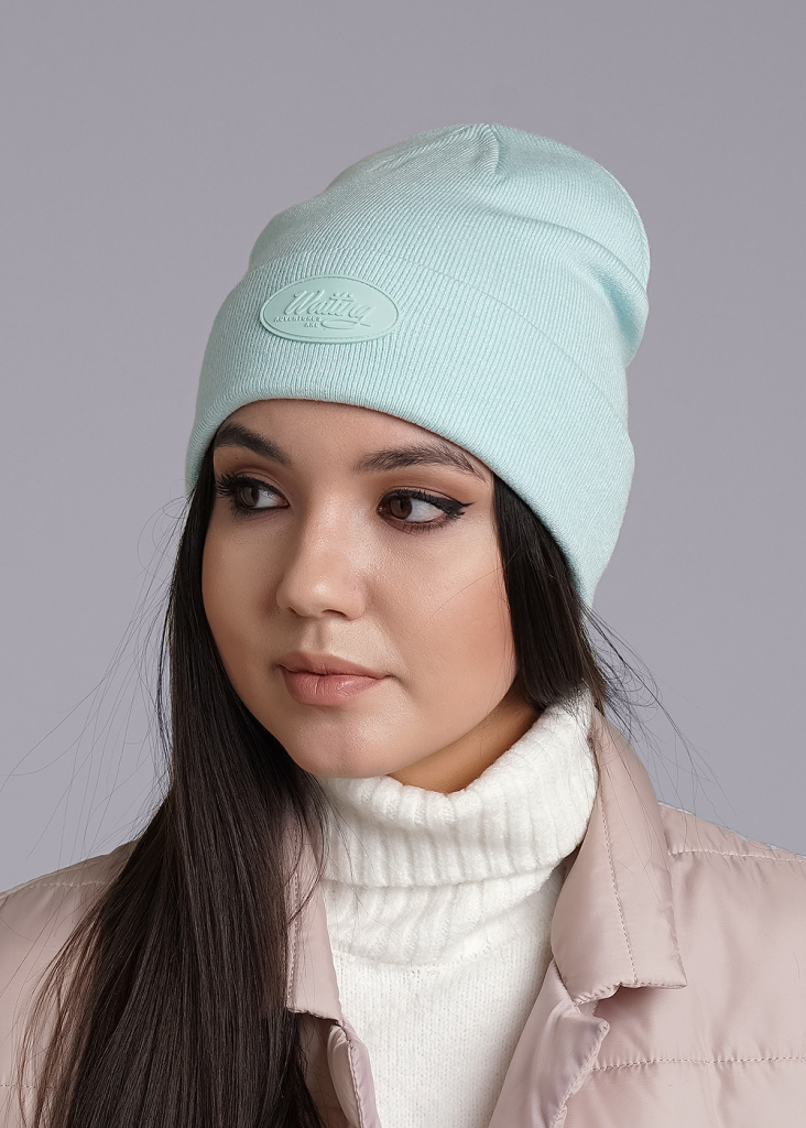 Женская двойная шапка с отворотом, декорирована нашивкой логотип в центральной части. Идеально подойдёт для весенне- осеннего сезона.