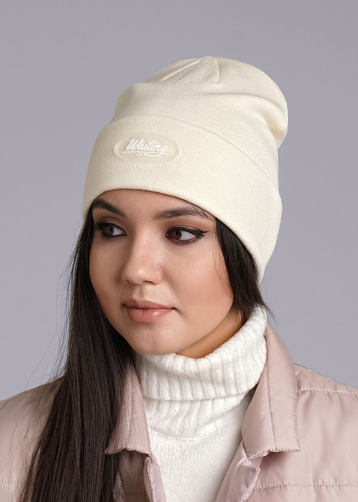 Женская двойная шапка с отворотом, декорирована нашивкой логотип в центральной части. Идеально подойдёт для весенне- осеннего сезона.
