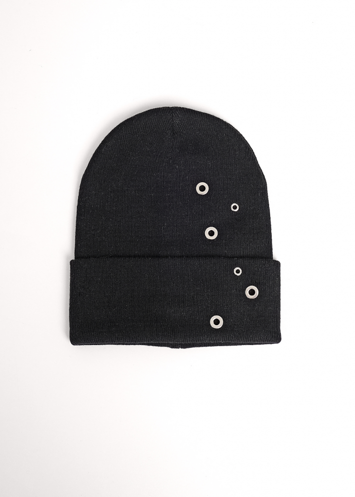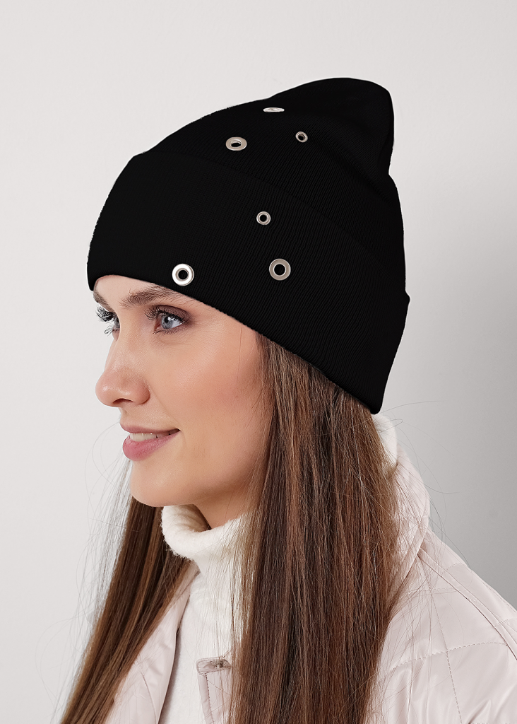 Шапка женская двойная из хлопковой пряжи, с отворотом, без утеплителя, декорирована люверсами. Идеально подойдёт для весенне - осеннего периода.