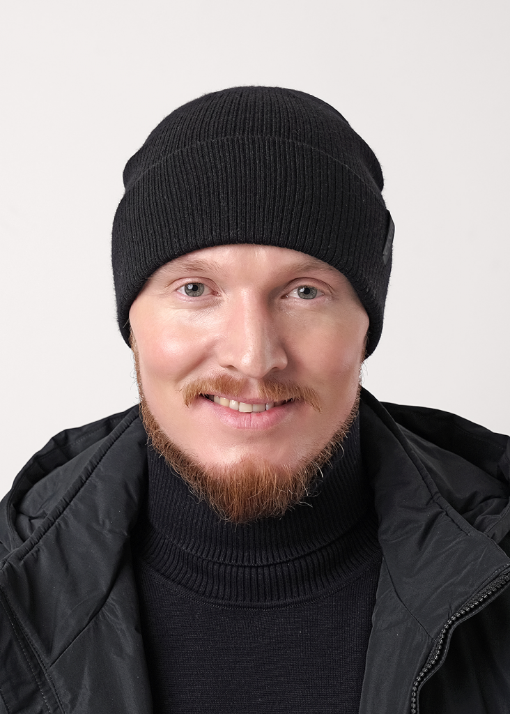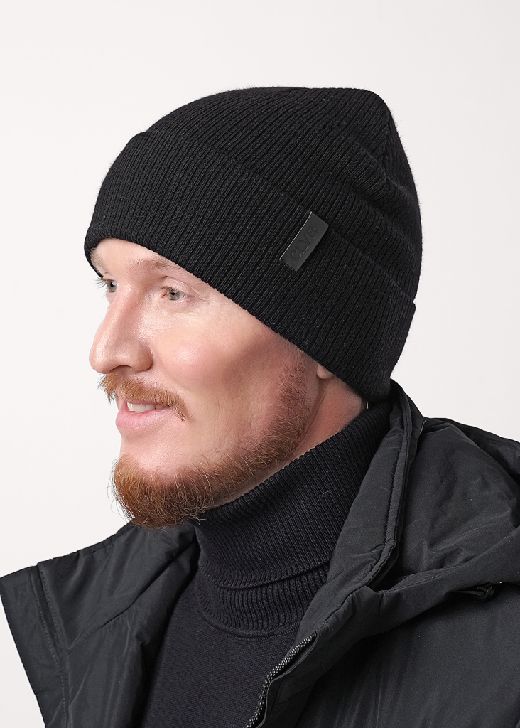 Шапка мужская двойная с отворотом, декорирована нашивкой.Идеальный вариант на осень, весну.