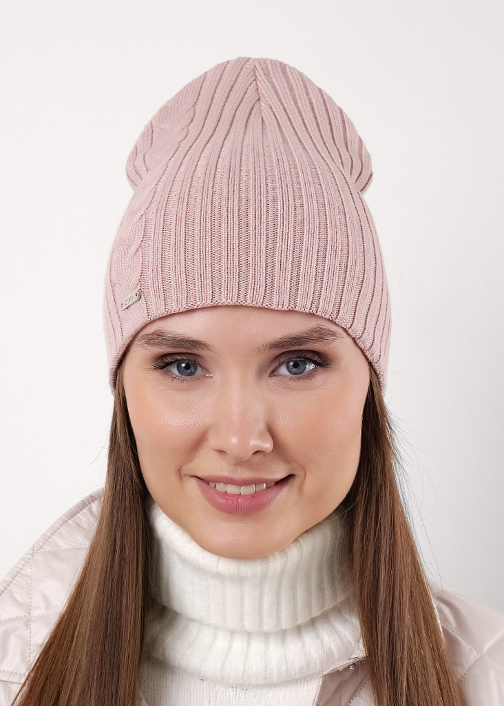 Шапка женская двойная, декорирована узором "косы", без отворота, без подклада, хорошо сохраняет тепло. Отличный выбор для прохладной осени и ранней весны.
