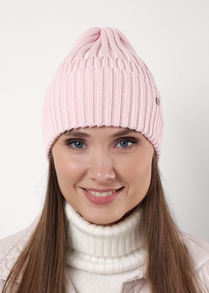 Женская шапка однослойная с отворотом, без подклада, декорирована стильной нашивкой. Изготовленная из хлопка. Идеальный вариант на осень, весну.