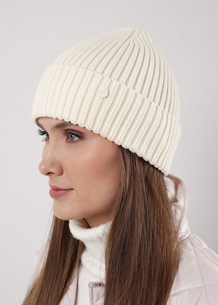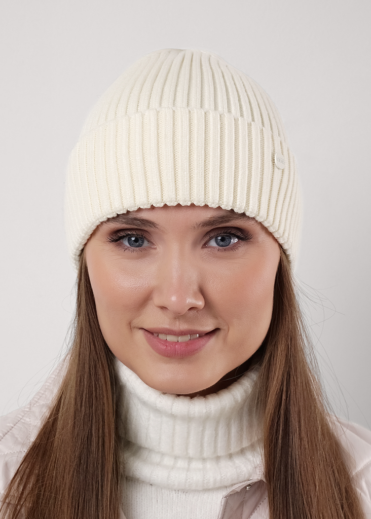 Шапка женская с отворотом, без подклада, выполнена ластичным переплетением. Декорирована нашивкой логотип. Отдично подойдёт для осенне - весеннего периода.