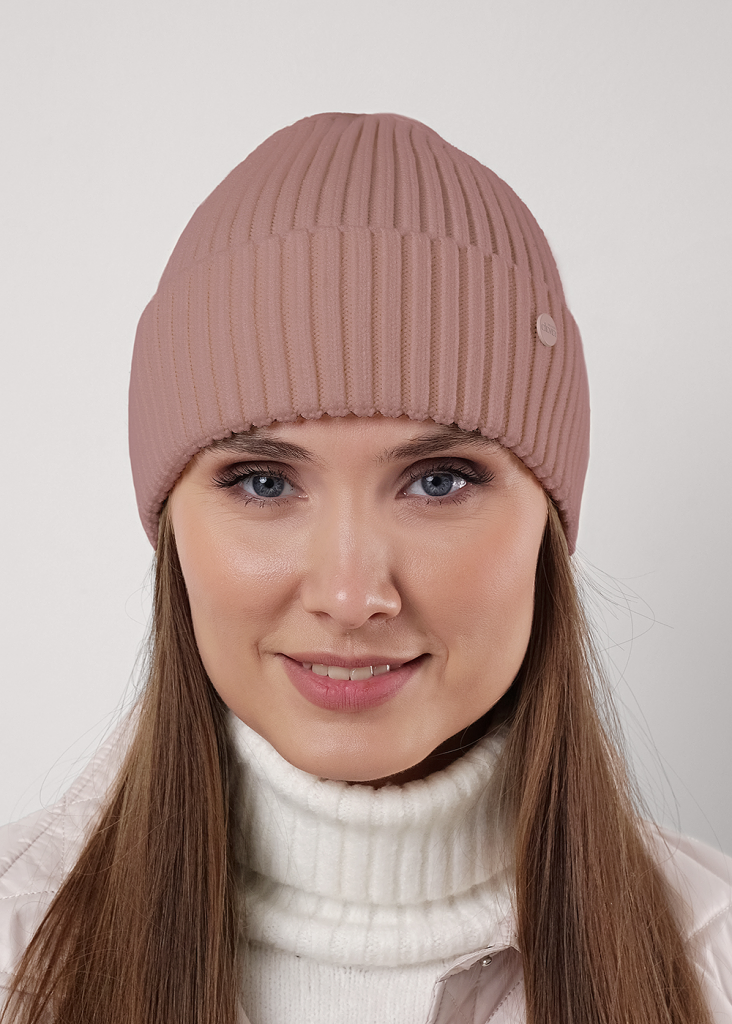 Шапка женская однослойная с отворотом, без подклада, выполнена ластичным переплетением. Декорирована нашивкой логотип. Отдично подойдёт для осенне- весеннего периода.