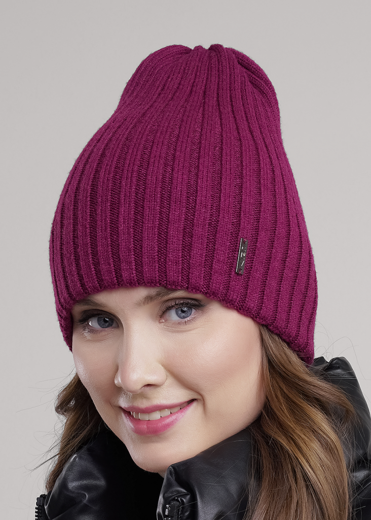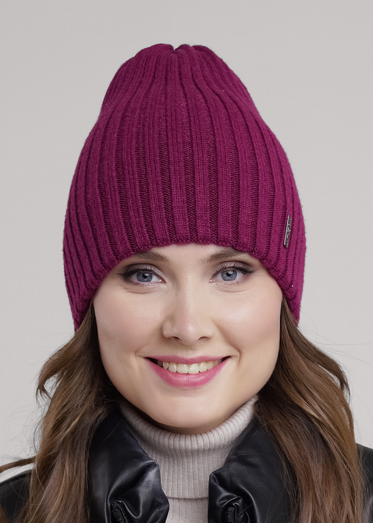 Женская двойная шапка без отворота, без подклада, декорирована нашивкой логотип. Подойдёт для холодной осени - тёплой зимы.