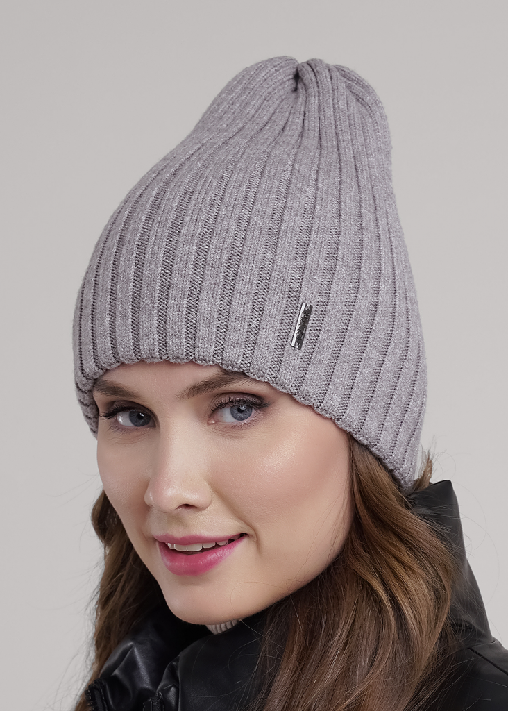 Женская двойная шапка без отворота, без подклада, декорирована нашивкой логотип. Подойдёт для холодной осени - тёплой зимы.