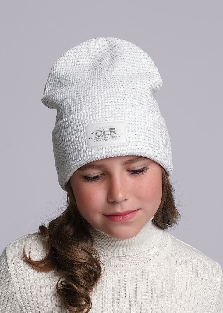Шапка детская двойная c отворотом, и с добавлением светоотражающей пряжи. Декорирована стильной нашивкой в центральной части. Отлично подойдёт для холодной осени, тёплой зимы.