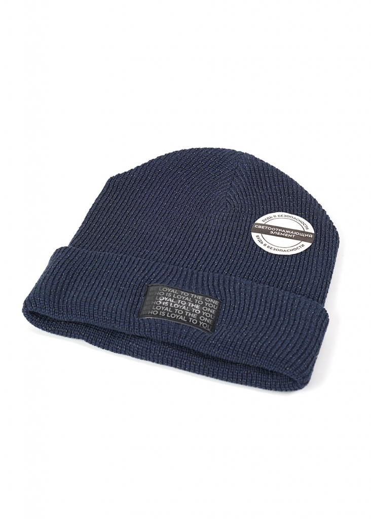 Шапка детская двойная c отворотом, и с добавлением светоотражающей пряжи. Декорирована стильной нашивкой в центральной части. Отлично подойдёт для холодной осени, тёплой зимы.