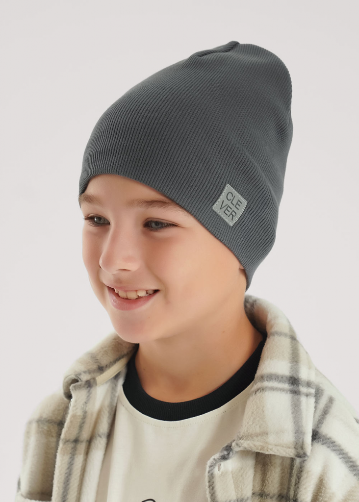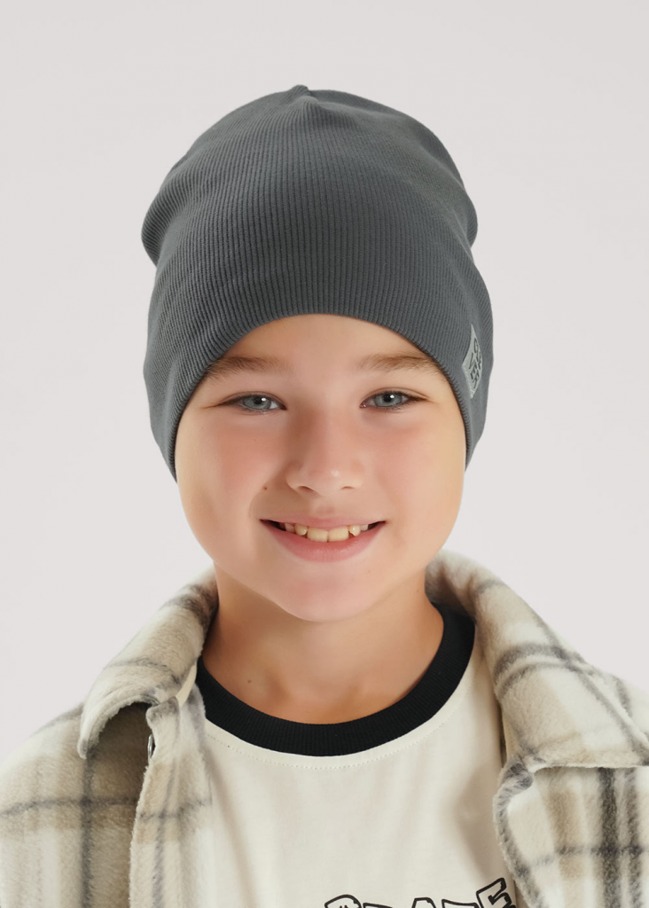 Шапка детская без отворота, декорирована нашивкой логотип. Идеальный вариант на осень, весну. Размер 52-54