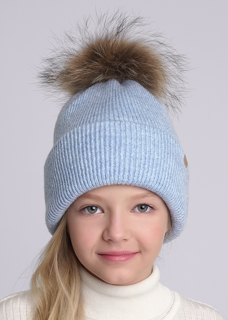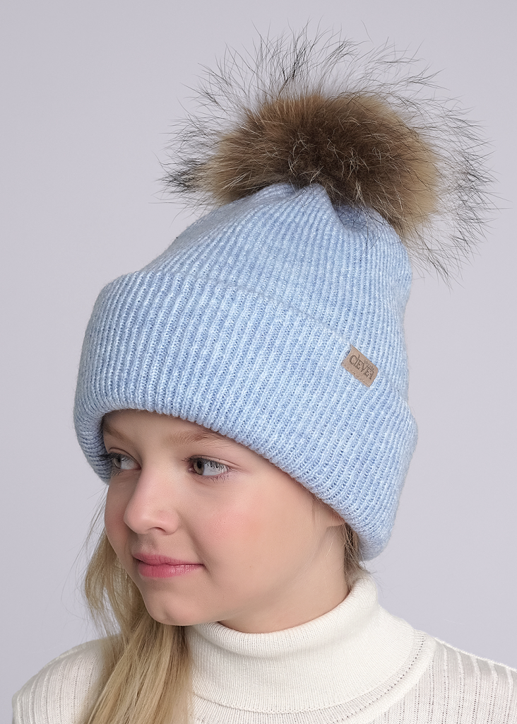 Двойная детская шапка с отворотом, декорирована нашивкой логотип и меховым помпоном. Идеально подойдёт для холодной зимы.